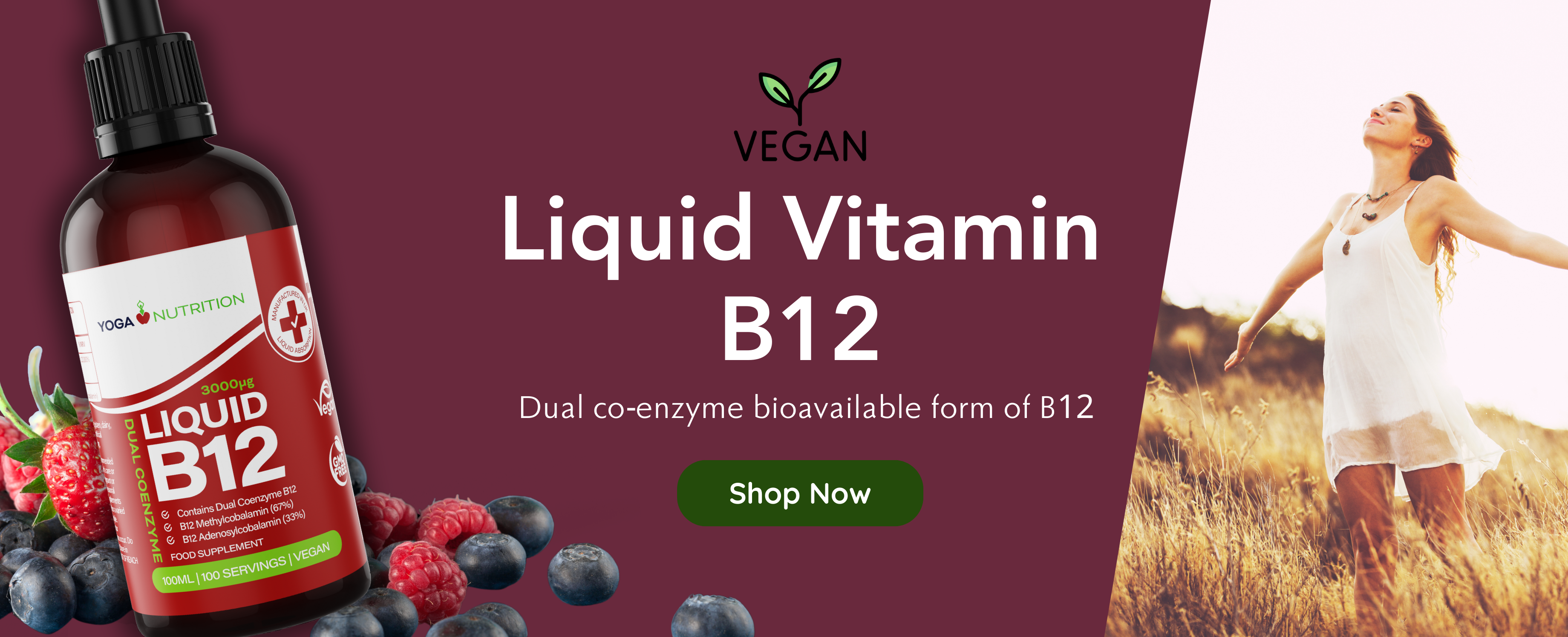 Yoga Nutrition Vitamin B12 Liquid High Strength - 3000mcg - Methylcobalamin + Adenosylcobalamin