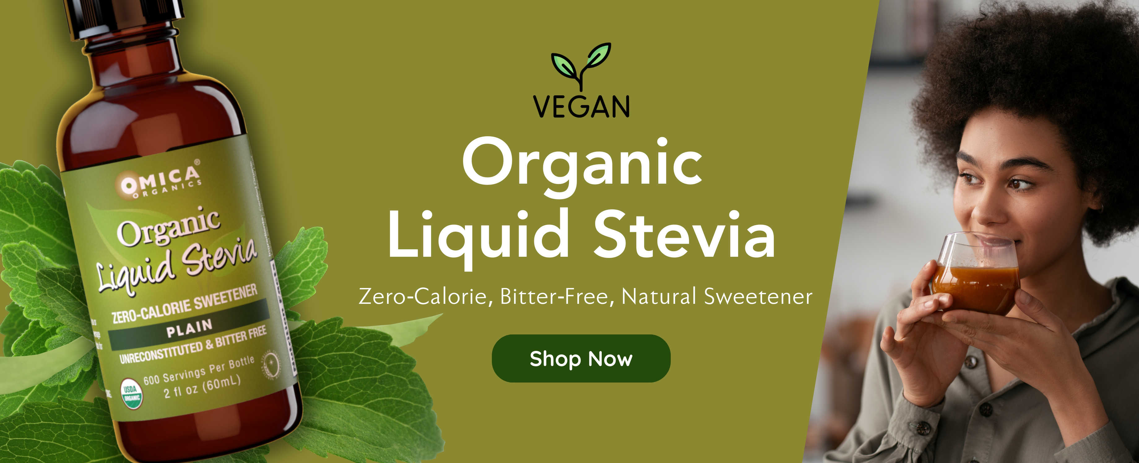 Omica Organic Liquid Stevia Sweetener Drops - Plain - Zero Calories by Yoga Nutrition