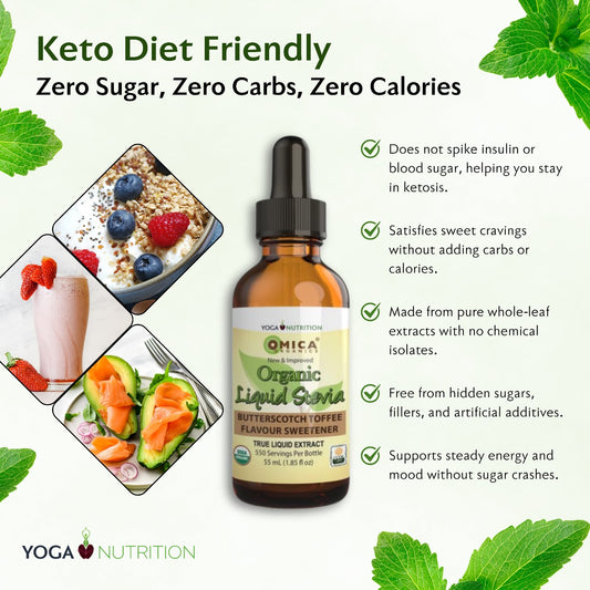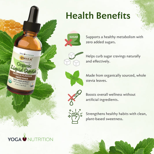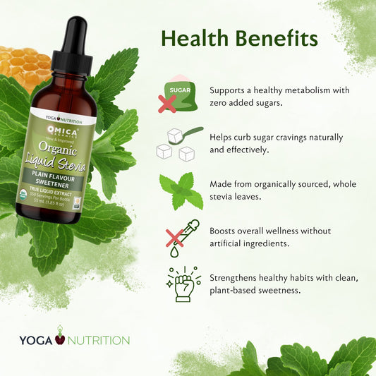 Omica Organic Liquid Stevia Sweetener Drops - Plain - Zero Calories by Yoga Nutrition