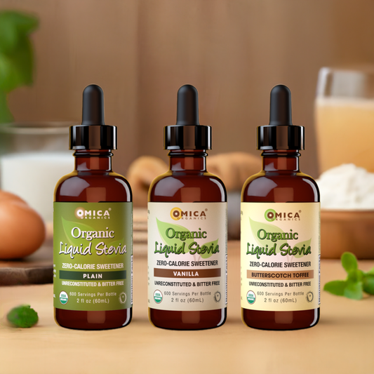 Omica Organic Liquid Stevia Sweetener Drops - Plain, Vanilla, Butterscotch